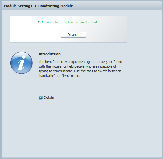 This chat module enables your chat users to draw a unique message to tease their buddies with the mouse, or help people who are incapable of typing to communicate. You can use the tabs to switch between Handwriting and Typing mode.