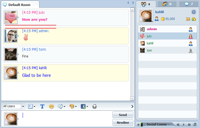 In the Message settings panel, admin can control link within messages, private messages among users, user activities notification, display avatar in input area, synchronize the color of username and message, etc. As shown below: