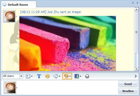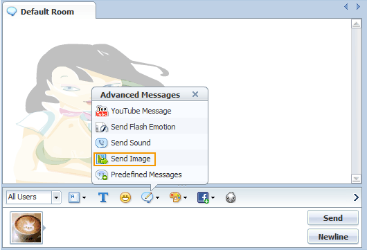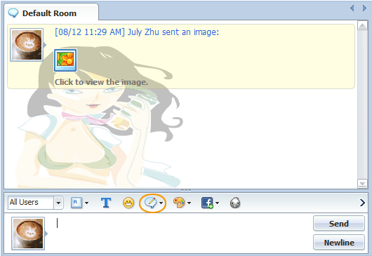 With this module enabled, you can send an image in the chat room or in a private chat.